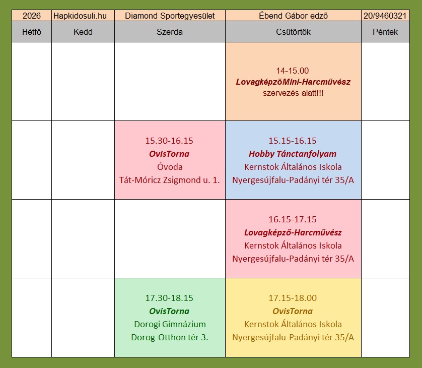 – Ovis Torna Tát – Szerda: 15.30-16.15 térkép: Térkép link -Google